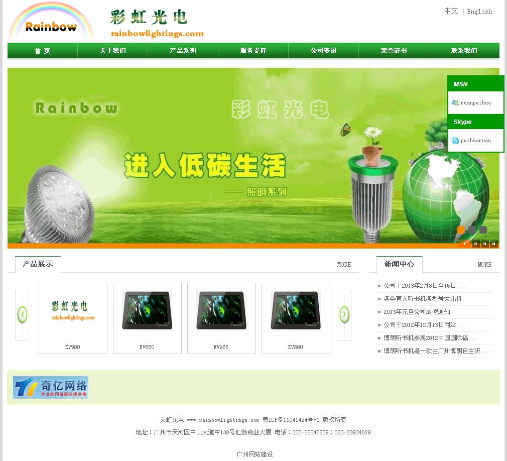廣州彩虹光電有限公司官方網(wǎng)站于2013年3月9日正式上線!