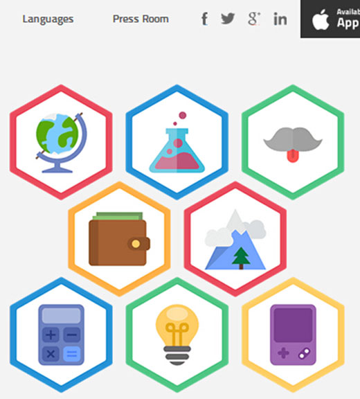 第一,做好扁平化設(shè)計(jì),只需秉承一個(gè)理念,那就是簡單。設(shè)計(jì)者應(yīng)舍得放棄,把以前用來將元素裝飾成3D效果的紋理、透視、陰影等的統(tǒng)統(tǒng)拋掉,用最簡單的表達(dá)方式展示最簡單的元素,結(jié)合抽象同樣可以把內(nèi)容展示得富有吸引力。扁平化的效果尤其在移動(dòng)設(shè)備上更受到歡迎,如果網(wǎng)站的受眾用戶集中的移動(dòng)用戶上,那么選擇扁平化設(shè)計(jì)一定不會(huì)錯(cuò),它帶給用戶的體驗(yàn)更加愉悅。如下一個(gè)頁面則是用典型的符號(hào)表達(dá)的內(nèi)容元素。