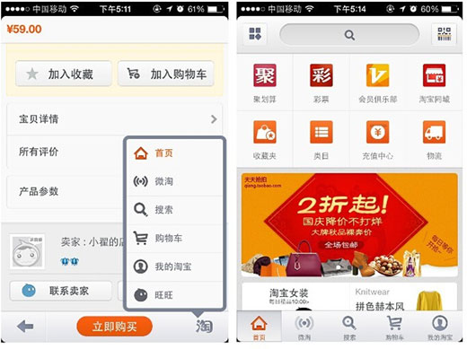 扁平化建設通常為了簡約,則減少了一些功能按鈕的設置,造成用戶瀏覽時出現(xiàn)使用障礙,要想保證網(wǎng)站原有的應用效果,取而代之的是交互設計,例如客服窗口,可用浮動按鈕的形式彈出對話框,既可不用占用頁面的資源,也可保證用戶在線互動窗口在顯眼的位置,方便被找到;再如下面的淘寶網(wǎng)站上的交互按鈕運用,用戶不管點擊了多少層頁面,如果想回到首頁,并不需要層層返回,只需點擊右下角的按鈕,則可輕松返回首頁。